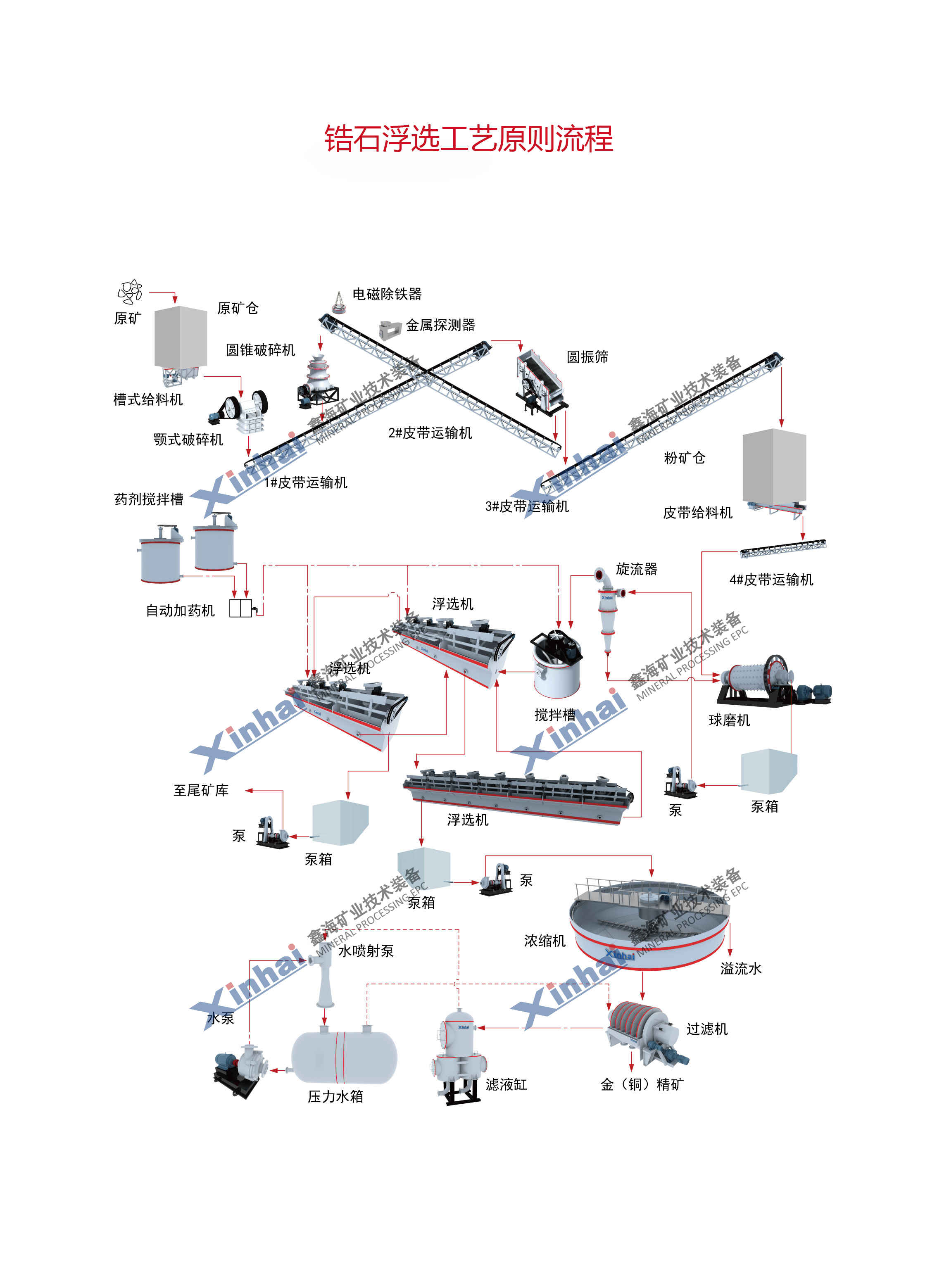 【工艺介绍】:锆石选矿工艺是去除杂质和提高锆矿石含量的过程。根据原矿的特点,鑫海设计了重选,磁选,浮选分离选锆矿的方法。